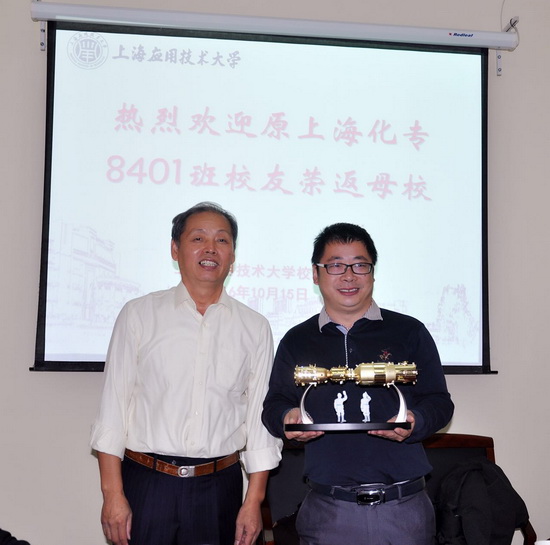 同时,原化专8401班校友也于近日返母校,共叙30年校友情。这是当年由来自全国各地的精英组成的航天班,毕业后,他们分赴各个单位和岗位,为祖国的航天事业发展无私地奉献着。30年后再相聚,校友们感恩昔日母校的培养。在“神舟十一号”飞船即将发射之际,他们将“天宫二号”与“神舟十一号”载人交会对接模型作为礼物送给母校,表达对母校培养的感激之情。原本2小时的聚会最后开了5个多小时才结束。校友们直言,为母校的发展成就感到由衷的骄傲和自豪。