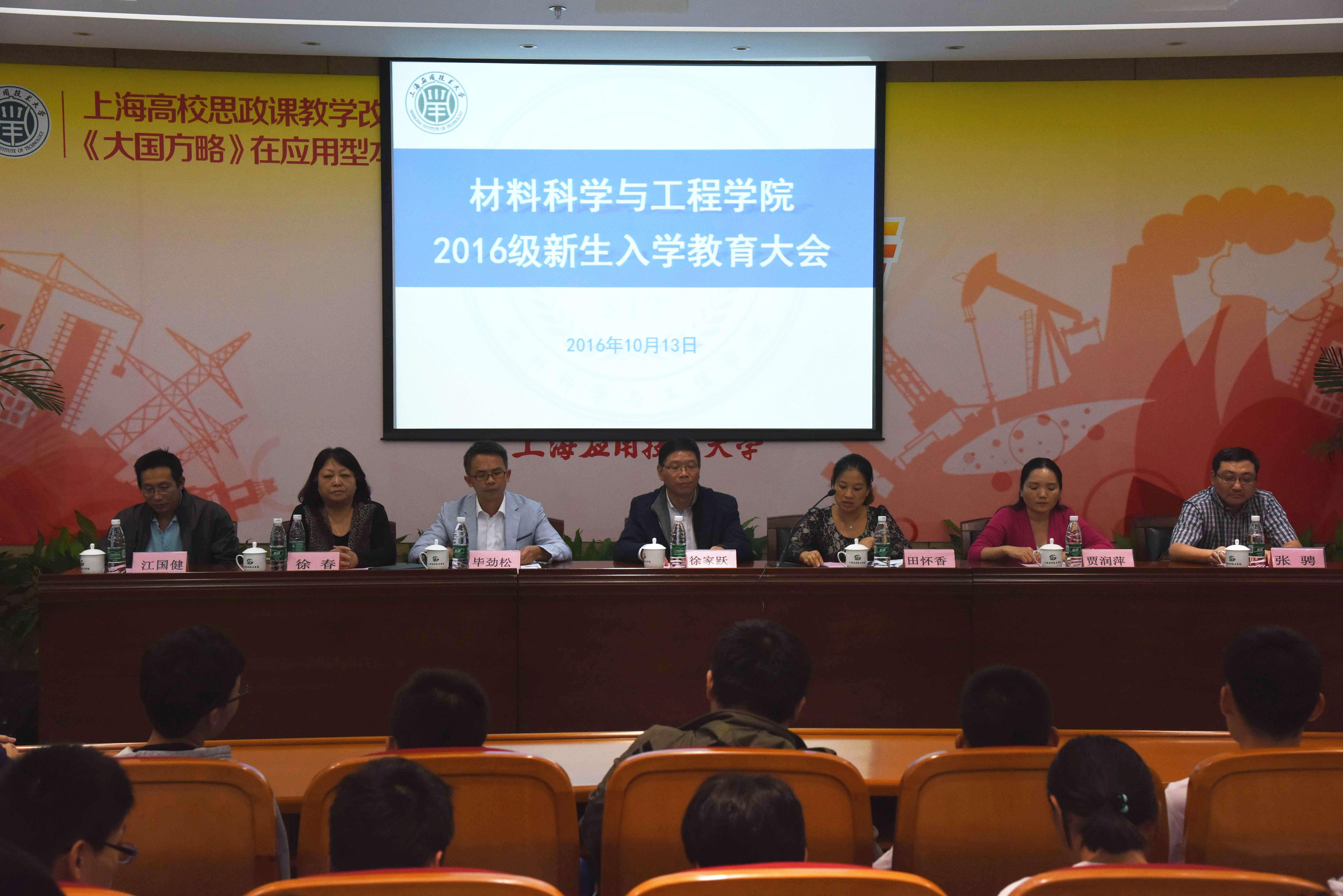 10月13日,材料科学与工程学院举行2016级新生入学教育大会。会议由学院党总支书记田怀香主持,院长徐家跃,党总支副书记、副院长毕劲松,副院长贾润萍及三位系主任、新生辅导员出席。学院2016级全体本科生参会。
