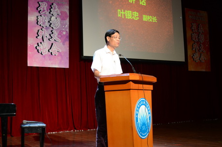 9月23日,副校长叶银忠出席外国语学院举办的“庆国庆·迎新生”星璨外语表彰大会。外国语学院院长陈家旭、总支书记李晓晶,校学工部副部长、学生处副处长朱美陶,团委书记、学工部副部长、学生处副处长张化,外国语学院党总支副书记、副院长金丽华,副院长孙志青、于静,专业教师及2016级全体新生参加大会。