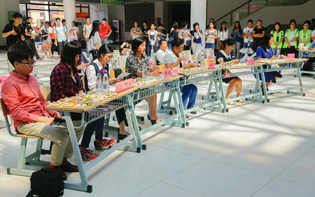 9月22日,由我校香料学院与中国食品科学技术学会、康师傅控股有限公司联合主办的“2016年康师傅方便面校园吃法创意大赛暨校园美食节”在奉贤校区举行,大赛共有6支团队参赛、19项作品入围参赛。作品前期通过微信公众号“香食生”推送海选,收到投票3791人次。在比赛现场,评委们根据选手对作品的答辩,视频、产品说明书展示和实物试吃等环节给出综合评分。经过激烈的角逐,“风火轮肉卷”、“果脯QQ彩球”、“鲜肉方包”、“香菇蒸面”、“饭了个面”等5项作品获奖并入围全国决赛。