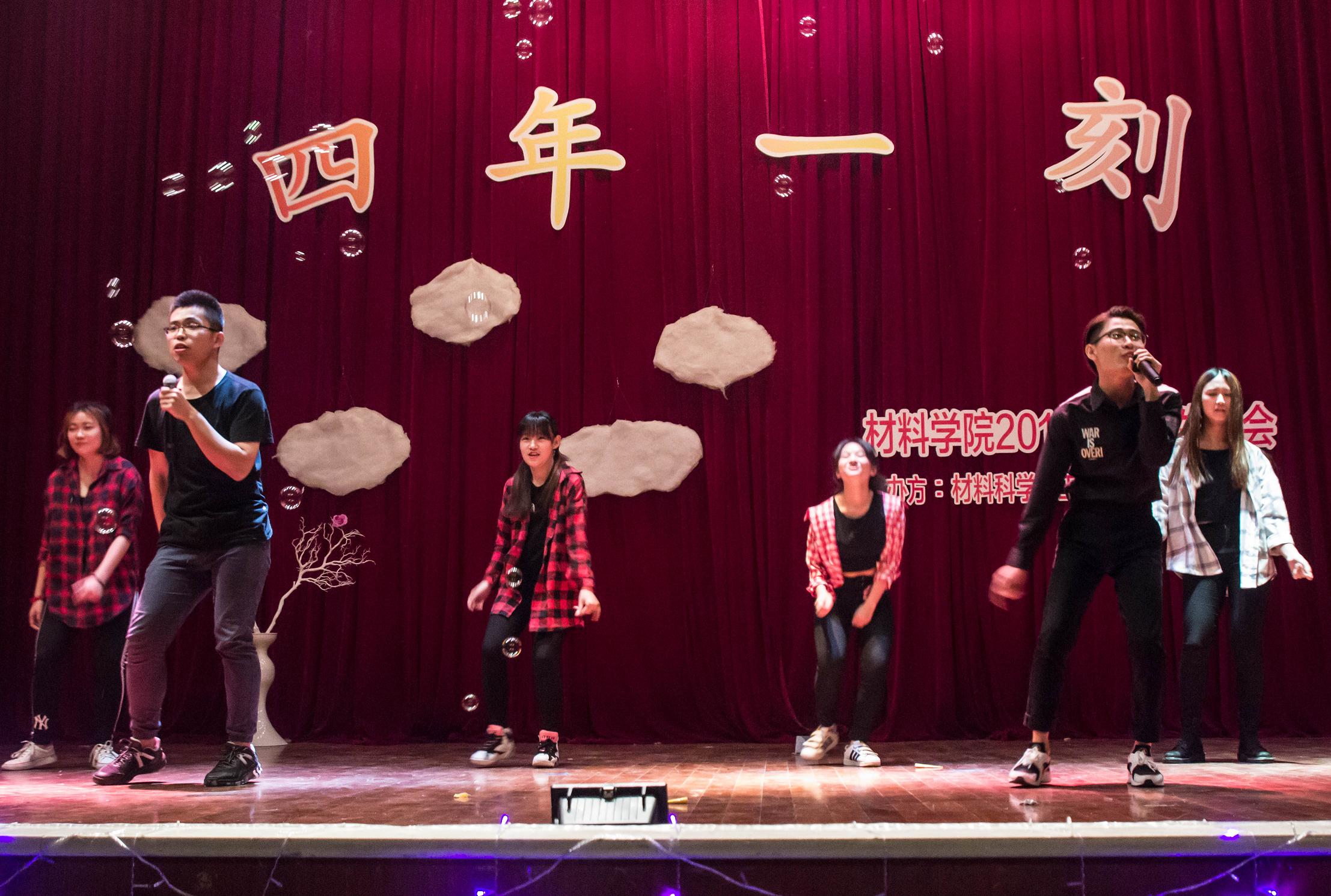 整场晚会突出毕业生元素,从主持人到歌舞表演、小品、话剧等节目,都由毕业生作为主角,晚会紧扣主题,节目精彩纷呈。材料学子们尽情挥洒才艺,展现多彩的青春。他们的创意与激情,让晚会现场成为一片欢乐的海洋。宿管阿姨、校武术队、D-zone社团等的加盟,为晚会增添了不一样的色彩。材料学子们用一段荧光舞,勾起了众多毕业生们对大学生活的回忆,激荡着着现场观众的内心,将晚会气氛推向了高潮。晚会在一首大合唱《一生有你》中圆满落下帷幕。
