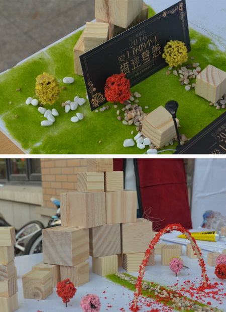 5月9日,城建学院举行“爱上你的小手”活动,活动旨在让学生深入了解建筑学、感受建筑的魅力,此次活动主办方特意准备了建筑学专业学生日常模型制作的材料如草粉,小木块,铁丝,模型树等,让感兴趣的同学便可以往上加东西,按自己的想象,可以“铺”一条石子路,可以“栽”一棵树,也可以“挖”一个小池塘,最后的成果是由来自各学院各专业的同学亲手共同完成的。活动开展期间,城建学院建筑学专业同学主动参与进来,向其他专业的同学讲述各个材料的用法,教同学们如何用铁丝去做一棵“树”,如何将“草”铺到板上,如何给“树”加上“叶子”等一系列的操作。