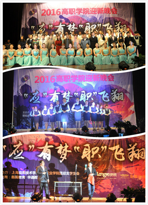 1月4日晚,高等职业学院“应有梦•职飞翔”2016年迎新晚会在徐汇校区大礼堂举行,徐汇校区管委会办公室主任翁德明、校团委书记张化、高职学院院长杨益群、副书记(主持工作)卢康道和600多名徐汇校区师生共同参加了晚会。