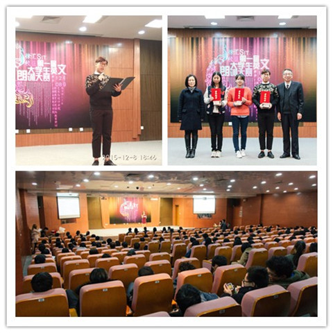 为了提高同学们的英文表达能力,锻炼综合素质,由继续教育学院和艺术与设计学院合作举办的徐汇校区第一届大学生英文朗诵大赛于12月8日晚在图书馆116报告厅举行。继续教育学院院长顾问、国际教育中心学术总监朱士昌教授,艺术学院副书记、副院长蔡旖旎,艺术学院团总支书记尹博,美籍教师Ellen Raum等担任此次大赛的评委。继续教育学院、艺术学院和高职学院近三百名同学观看了此次英文朗诵比赛。