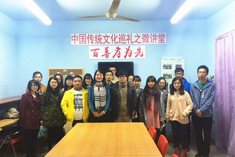 听过了每个同学的交流,周赟就“孝的排他性”为大家加深了对于“孝”的认识。如两位老师所说,报名并参加此次微讲堂的同学,一定是心存孝心。一个小时的活动中,整个党团活动室被深深的爱包围,同学们从交流中认识到了——“最好的孝顺就是陪伴”。