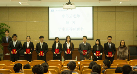 学生班导师在新生适应大学的学习生活发挥了重要作用,学院对他们的工作给予充分肯定,章冬云为2015级学生班导师颁发聘书。