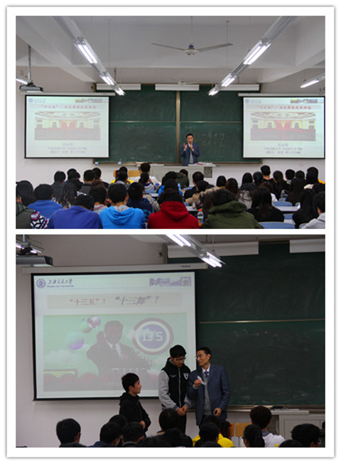 11月20日,上海交通大学马克思主义学院副院长、博士生导师胡涵锦教授,应邀走进我校《毛泽东思想与中国特色社会主义理论体系概论》课堂,为同学们专题讲授了一堂题为“‘十三五’:五大发展理念”的别开生面的思政课。