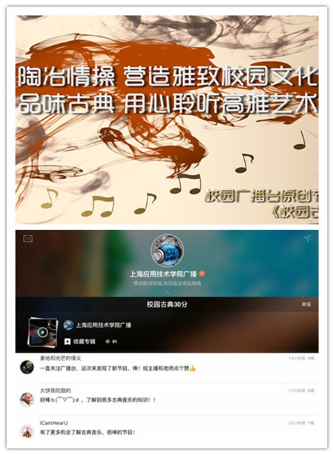 《校园古典30分》系列节目以向广大同学普及古典音乐为主旨,校园广播台专门组建的学生团队负责编辑、主持和录制,李建民老师担任策划指导并担任解说嘉宾。节目于每周三中午与听众见面,并通过中国最大的音频分享平台——喜马拉雅FM向公众传播,获得了校内外听众的关注和点赞。