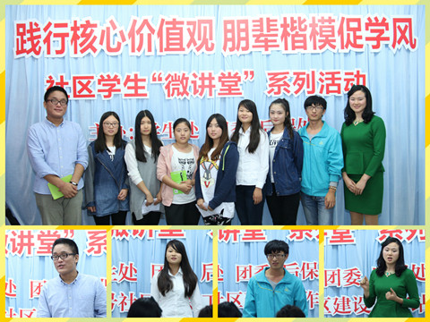 为践行社会主义核心价值观,强化学风建设进社区工作,计算机学院10号社区承办了由学生处、团委、后保处主办的“践行核心价值观 朋辈楷模促学风”——社区学生“微讲堂”系列活动。