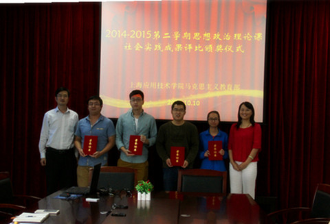 为提高我校学生思想政治理论课社会实践水平,实现思想引领,10月10日下午,马克思主义教育部在第五学科楼B101室隆重举办首届思想政治理论课社会实践成果(2014-2015学年第二学期)表彰大会。校团委书记张化、马克思主义教育部主任李国娟、马教部全体教师及27组获奖成员学生代表参加了颁奖仪式。