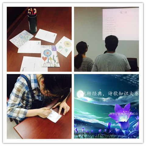 为弘扬中华民族优秀传统文化,丰富校园生活,营造和谐校园氛围, 9月23日晚,图书馆老师和图书管理协会新老会员在图书馆A808举办了“玩转经典诗歌知识大赛”的中秋活动。