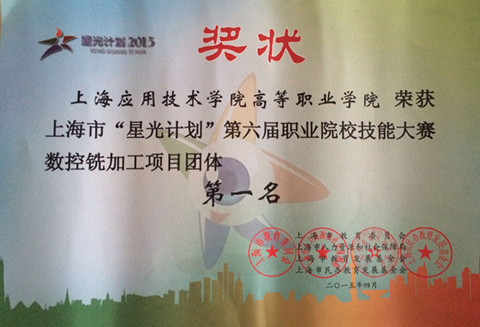 近日获悉,在2015年3月下旬--4月进行的上海市“星光计划”第六届职业院校技能大赛,我校高职学院喜获 “数控铣加工”项目团体奖第一名;梁允同学获得“网站设计”个人三等奖;曹久阳同学获得“平面设计”个人三等奖;徐露依同学获得“平面设计”个人三等奖;邢超杰同学获得“数控铣加工”个人二等奖;张晴同学获得“数控铣加工”个人三等奖。