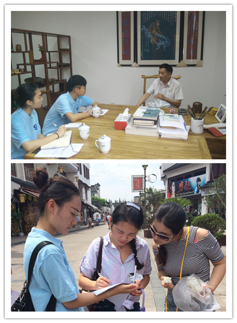 7月底,团队一行6人分别前往七宝古镇、召稼楼,以问卷调查和人物访谈形式进行实地走访调研。调研过程中,队员们团结协作,就古镇的历史风貌认知度与关注度、古镇发展现状等问题对游客和当地居民发放了50份问卷。在对当地居民及游客的随机采访中,队员们也深入了解百姓对古镇文化传承等问题的看法,并呼吁游客爱护古镇的建筑、文物遗存,保护好江南古镇的原始风貌,共同维系当地居民的生活形态。