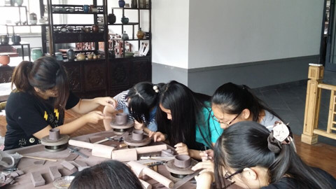 最后团队来到了紫泥公社,亲自体验了紫砂壶的制作,真切体会到了紫砂壶“独一无二”的气质和艺术。