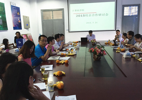 7月21日,为进一步加强校企深度合作,推进卓越计划的有效实施,计算机学院召开2015年校企合作工作研讨会,计算机学院院长刘云翔,党总支副书记(主持工作)于有进,学生处副处长王真,学院副院长肖立中出席会议,上海软中、京颐、商友、中讯申软、亚太、冉正、速文网络、腾科等多家企业负责人、专家和我校相关辅导员参加会议,会议由副院长李文举主持。