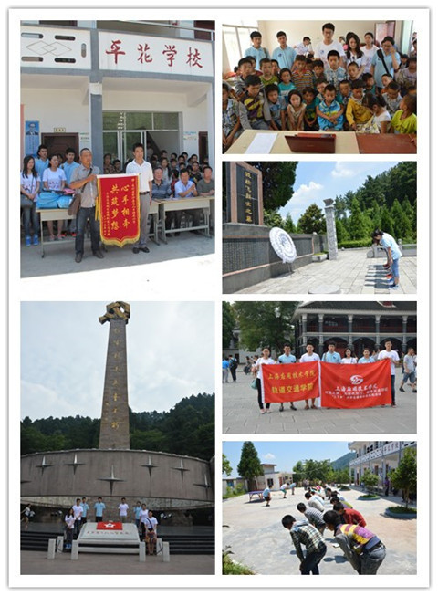 轨道交通学院社会实践团队冒着高温,长途跋涉30余小时来到贵州,在遵义会议召开八十周年之际,精心选取实践线路,团队成员本着实践求知的态度,坚持学习遵义会议坚定信念,独立自主,敢闯新路,民主团结的精神,深入一线、深入西部、深入农村,革命老区和西部偏远山区开展了“三下乡”社会实践活动。为增进我校和山区小学彼此之间的了解,相互学习交流,共同为促进农村义务教育作出应有的贡献,与金沙县后山乡坪花小学进行了帮扶共建合作,建立社会实践基地。