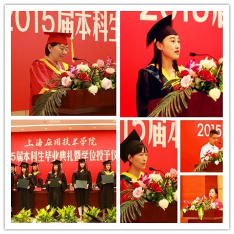 张淑梅宣读外国语学院荣获上海市、校优秀毕业生名单,并向他们表示衷心的祝贺。在场领导向2015届毕业生颁发学士学位证书并授予学士学位,毕业生们上台领取学士学位证书,标志着他们圆满完成了四年的大学学习生活,从母校光荣毕业,迈入人生新阶段。