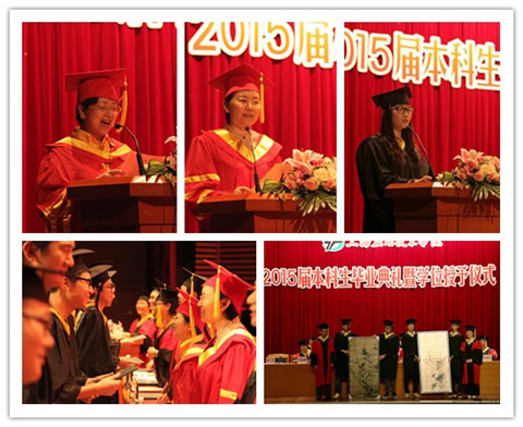 张艳萍宣读了2015年上海市、校“优秀毕业生”名单,并颁发证书。学生工作部副部长(主持工作)翁德明宣读了工创学院明星毕业生名单。学院党总支书记范文蓓宣读获得学士学位的学生名单。学院副院长吴梦初宣读获得“卓越工程师教育培养计划”学习证书学生名单,全体毕业生上台领取我校“卓越工程师教育培养计划”学习证书。主席台就坐的领导、老师为毕业生们一一授予学士学位证书、正冠拨穗。