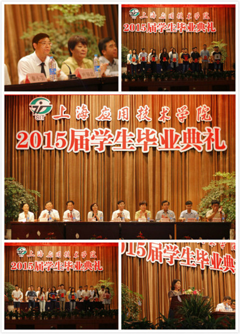 秦小芸、杨益群分别宣读2015年上海市优秀毕业生、上海应用技术学院优秀毕业生名单,并为优秀毕业生颁发证书。在欢快的音乐声中,领导向2015届高职全体毕业生授毕业证书。
