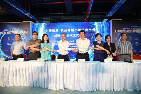 发布会上,上海市金山区区委书记李跃琪致辞,并与上海临港经济发展(集团)有限公司副总裁朱伟强、袁国华共同启动了上海临港•枫泾“科创小镇”标志。枫泾镇党委书记张斌详细介绍了“科创小镇”创立的背景、枫泾“产学研孵创投”大平台,以及园区的各项优惠政策。他们热诚欢迎广大企业、高校和大学生创业团队的加入。