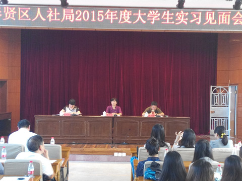 6月9日,人文学院劳动与社会保障专业2012级学生专业实务实习见面会在奉贤区人力资源和社会保障局会议室举行。会议由奉贤区人保局办公室主任盛一萍支持,人保局党委副书记周克勤出席见面会并讲话,人文学院副院长苗瑞凤及实习指导教师、人保局各机关、人保局下属10个事业单位的领导和带教老师参加了见面会。