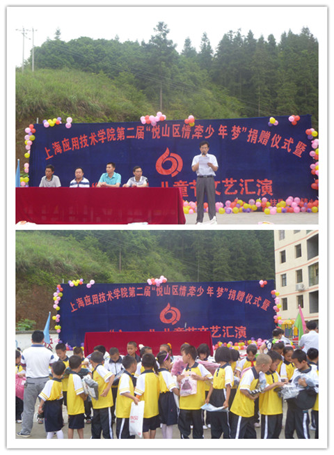 六月一日,贵州省黔东南州天柱县坌处小学举行了上海应用技术学院第二届“悦山区情,牵少年梦”六一圆梦活动捐赠仪式。天柱县教育局局长、坌处镇镇长及坌处小学全体师生参加了捐赠仪式。坌处小学校长向在场的人员介绍了上海应用技术学院悦牵公益服务队以及本次捐赠活动详情,并代表全校师生感谢“悦牵”的志愿者们的爱心与付出。此次活动现场得到了天柱县电视台、黔东南电视台等多家媒体的记者跟踪报道。