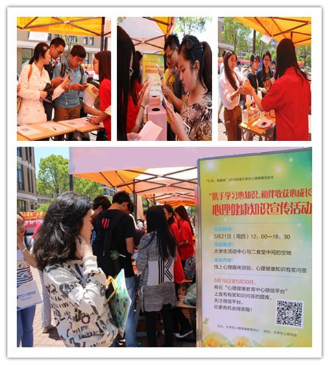 本次活动主要分为心理趣味测验、心理健康知识有奖问答活动。同学们通过参与在线心理趣味测验能够了解自己在人际交往中的风格。通过参与心理健康知识有奖问答的活动可以了解到有关调节情绪、树立自信心、处理寝室关系、处理亲密关系等心理自助的知识,还可以了解到有关给予他人安慰、给予他人情感支持等心理互助的方法,以及有关心理咨询室地址、心理咨询预约电话、24小时心理咨询热线等心理求助的知识。活动现场气氛热烈,同学们兴致勃勃的参加心理趣味测验,并将测验分享给同学,继而参加有奖知识问答活动,在一问一答中收获了更多的心理健康知识。