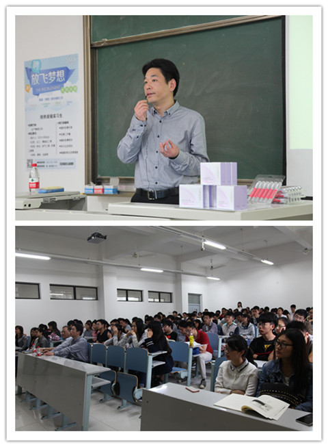 伽蓝集团生产基地厂长严军、生产技术部门总监甘正霖从消费者的角度出发,详细讲解了从原料选择到化妆品成品产出的一系列工艺与相关测试,让同学们了解了化妆品行业的质量监控和生产技术的流程。为了满足同学们对集团各方面信息的渴求,公司人力资中心培训主管赵烨与大家进行了互动,并当场收下同学们准备好的简历。