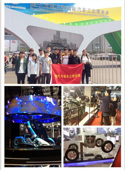 作为大学生观光团,如何深入到车展的方方面面,全面感受国际车展的律动,就需要用电气学生专业的的独特视角去观察自己眼中的车展。车展展示的豪车阵容成为现场最熠熠生辉的亮点,顶级设计、奢华配置以及名车的品牌效应首先引起了学生们的注意。其次,大胆创新的概念车设计也让人叹为观止——“这个车怎么没有方向盘?”,“全敞开的车门设计是怎么做到的?”,学生们带着一个个疑问驻足流连在各种概念车展台前。新能源车环保节能的超前理念,更是赢得了学生们的一致赞同。最后,学生们还参观了零部件展览馆,触摸感受到每一辆车背后精心打磨的点滴。