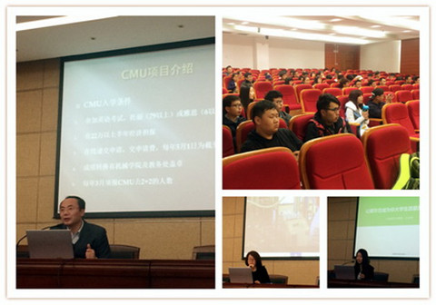 徐兵生动分享了在美国的经历:城市印象、校园优美,老师与学生上课的情况,中国留学生学习和生活情况等等。他还与胡婷分别介绍了中央密歇根大学、爱尔兰塔拉理工学院与学院合作的项目,对入学条件、费用、申请过程、交流形式等多个方面进行一一讲解。塔拉理工学院游学归来的大三学生王欣然同学用自身经历向同学们介绍了班级4人在塔拉理工为期半年的学习和生活,详实的感受记录、丰富的图片分享让参会的同学们对出国交流学习充满兴趣。