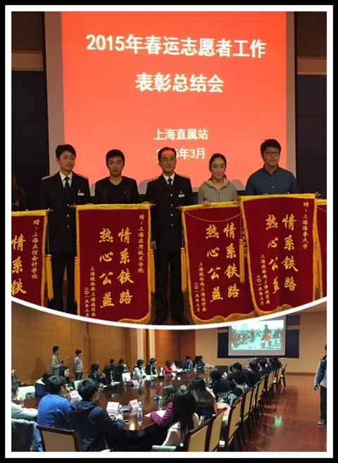 3月24日,应上海直属站团委邀请,我校轨道交通学院与经管学院参加了上海春运志愿者表彰大会,轨道交通学院代表学校接受锦旗。上海直属站纪委书记李博,团委书记陈浩及各高校志愿者指导教师、志愿者代表出席此次表彰大会。