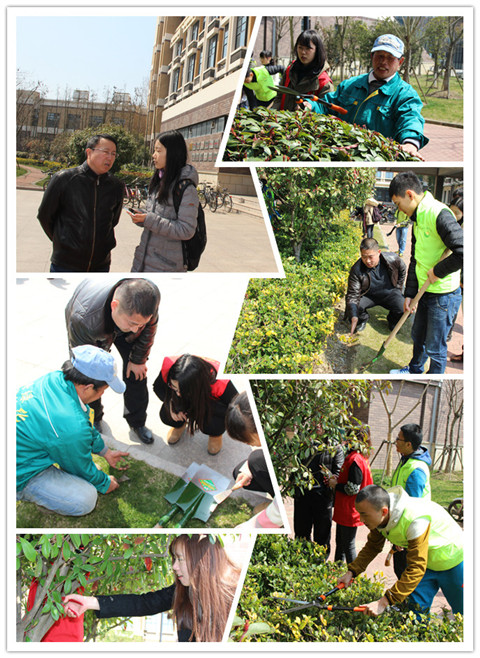 在植树节当天中午,香料学院分团委和学生会组织“香溢满园护绿队”在第三学科楼绿化地带举行护绿活动。在后保处副处长钟家春、金海峰老师和园艺师的指导下,队员们手持专业工具,兴致勃勃地进行了去枯、修剪、清杂、培土等护绿工作,让灌乔植株能充分地沐浴阳光、汲取营养,使整个绿化地带更显葱绿宜人。