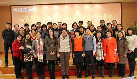 在2015年新春佳节到来之际,1月23日,马克思主义教育部2014年总结表彰会在奉贤校区工会二楼举行。副校长张艳萍出席表彰会并讲话。部门党政领导班子成员和全体教师参加了表彰会。