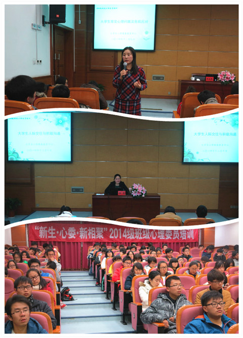 我校于12月在图书馆B102开展了2014级班级心理委员岗前业务培训系列讲座,邀请华东理工大学心理咨询中心副教授李永慧、心理健康教育中心专兼职心理咨询师为2014级班级心理委员进行岗前业务培训。
