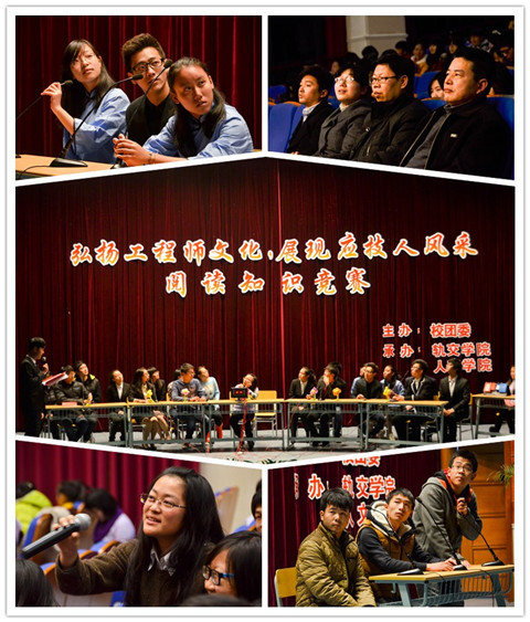 12月18日晚,由校团委主办、轨交学院和人文学院联合承办的以“弘扬工程师文化,展现应技人风采”为主题的阅读知识竞赛在图书馆B106举行,活动吸引了来自全校十三个学院代表队的广泛参与。校党委宣传部副部长董国文、人文学院副院长张小懿、人文学院副教授赵敬立及轨交学院、人文学院团总支书记出席了活动。