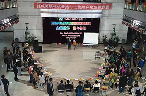 为了增强同学们对文明礼仪知识的重视,丰富同学们的课余生活,弘扬传统文化,11月19日晚,7号和8号社区建设工作站在大活底楼开展了“金榜题名——传统文化知识”竞赛,参加本次竞赛的人员有来自各社区的同学。
