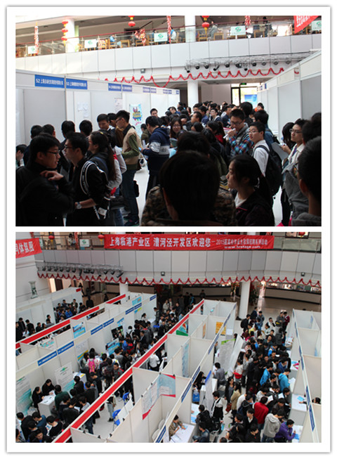 11月14日,在奉贤校区大学生活动中心,我校举行2015届毕业生临港漕河泾开发区专场招聘会。上海自动化仪表股份有限公司、万达信息股份有限公司、上海市建筑装饰工程集团有限公司等近70家企业出席本次招聘会。上海临港漕河泾人才有限公司人才招聘中心负责人、我校2015届毕业生、就业指导服务中心相关负责人和各二级学院就业辅导员参加了招聘会。