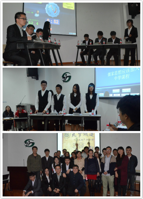 此次决赛是以社会关注的“儒家思想是否应该加入中学课程”这一话题展开辩论。双方辩手唇枪舌战,充分发挥团队合作精神,双方各据一势,互不相让,逐步将现场气氛推向高潮,最终,2014级安全工程1班更胜一筹,夺得此次辩论赛总决赛的冠军。