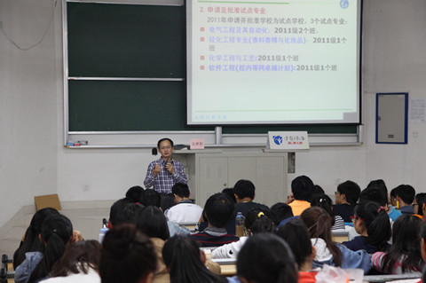 10月30日晚,工程创新学院在二教I106举办以《卓越计划与成就卓越之路》为题的入学教育讲座,工程创新学院副院长、高级工程师吴梦初老师担任主讲,四个“卓越计划”试点专业(电气工程及其自动化专业、化学工程与工艺专业、轻化工程专业及软件工程专业)的专业主任及2014级140余名新生参加讲座。
