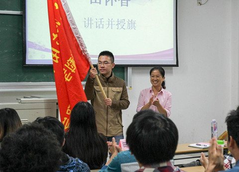 大会从一段激动人心的视频回顾开始,第十三届运动会上材料学子奋力拼搏、勇夺桂冠的表现让现场每个人热血沸腾。田怀香表示,她深深被现场的热情所感染,相信材料健儿一定将延续这股奋力拼搏的精神,蝉联桂冠。她将象征团结、胜利的旗帜授予运动员代表。章冬云也上台为运动健儿们加油鼓劲。