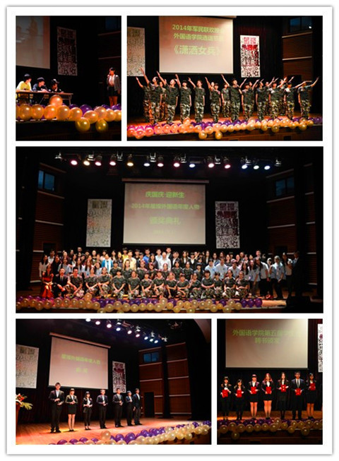 为表彰外国语学院学子在过去一学年所取得的成绩,让同学们感受榜样力量。10月17日下午,外国语学院在大学生活动中心小礼堂举行了“庆国庆、迎新生”2014年星璨外国语年度人物颁奖典礼。学院党总支书记张淑梅、校学工部副部长翁德明、校团委书记张化及各兄弟学院的师生代表等应邀参加了此次典礼。外语学院师生们参加了典礼。