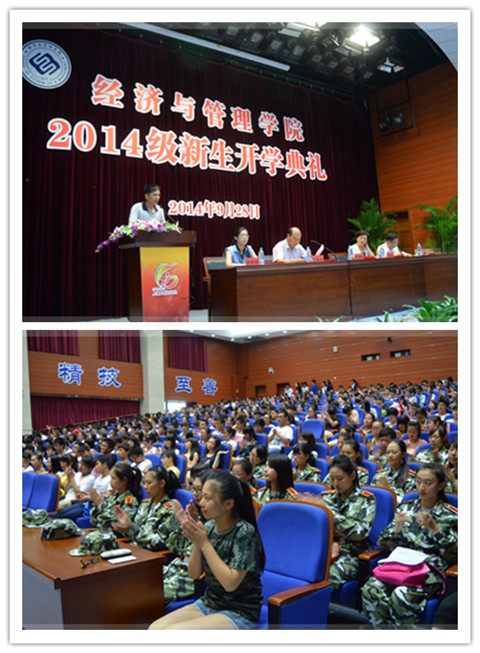 9月28日下午,经管学院在图书馆B106举行2014级新生开学典礼,经管全体本科新生及学院党政班子、系主任、新生班导师和辅导员出席了典礼。