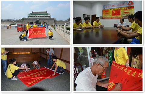 接着,队员们开始了此次活动最繁重的任务——走访居民来了解当地民众保护古文化的意识以及他们对待古代文化的态度。开始的时候,由于当地的语言偏向于江淮官话,语言不通,队员们都很不习惯,后在一名安徽籍同学的帮助下解决了难题。队员们向当地居民介绍活动的性质和意义,之后讲解如何保护古文化和保护古文化的益处。朴实的当地居民积极配合,热情参与保护古文化倡议签名活动,也让大家深深感受到了千年古城的淳朴民风。
