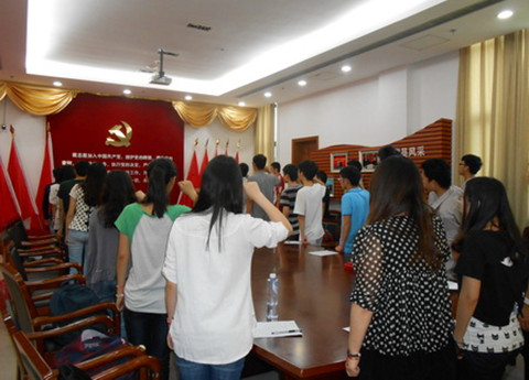 6月10日下午,电气学院学生第一党支部在图书馆B107党员发展活动室开展毕业生党员重温入党誓言活动。全体2010级毕业生党员在领誓人的带领下,面向党旗,高举右拳,庄重地宣读入党誓词,“我志愿加入中国共产党,拥护党的纲领,遵守党的章程……”。伴随着毕业生党员们铿锵有力的宣誓,电气学院学生党员们将永远记住这一天。活动后,党员们纷纷表示会在今后的工作、生活中时刻铭记自己的党员身份,人人争做优秀共产党员。