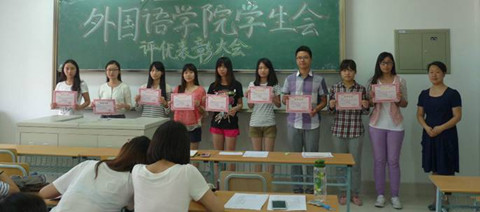 近日,外国语学院学生会在第五学科楼B105召开了评优表彰会。外语学院党总支副书记、副院长金丽华,团总支书记汪春柳,辅导员刘从文出席表彰会。