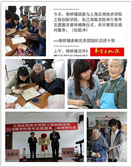 5月9日,工程创新学院江海敬老院“青年志愿服务基地”揭牌仪式在江海敬老院举行。奉贤区南桥镇团委和江海敬老院领导、工程创新学院团学组织负责人出席了本次揭牌仪式。工程创新学院“沐曦”志愿者队的志愿者们和老人结对并开展了首次志愿服务活动。