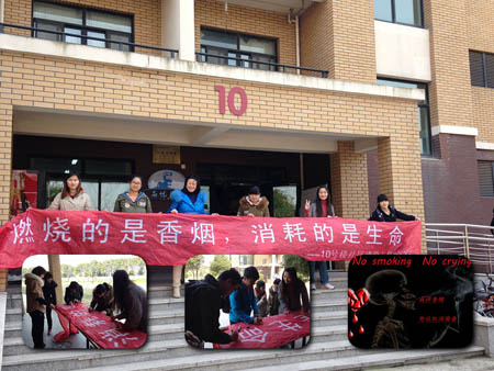 为响应学校社区禁烟行动的号召,计算机学院10号社区建设工作站于3月6日—21日开展了“拒绝香烟致命诱惑,还给校园一片清新”社区禁烟系列活动。