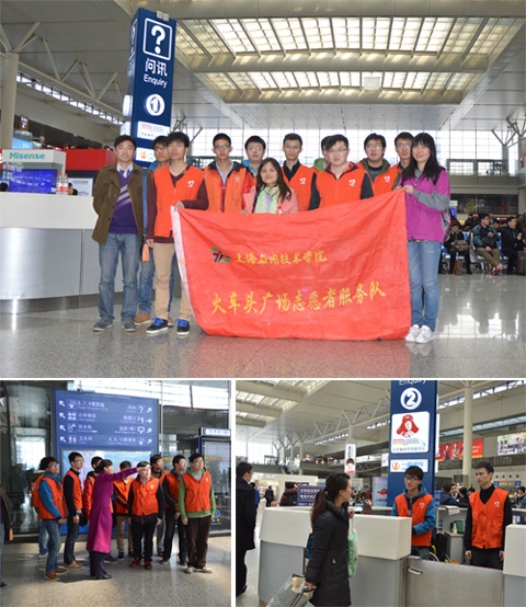 轨道交通学院“1+N”义工队成员和通号、交通、机辆三个专业的学生,从校园走进社会,奔赴虹桥火车站开展以“弘扬雷锋精神,投身志愿服务,传递青春正能量”为主题的志愿服务。