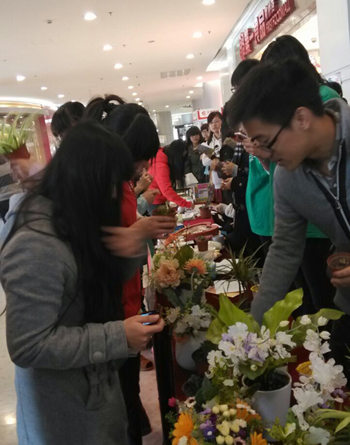 生态学院“科学商店”的志愿者们带去了居家植物以及插花作品,为社区居民介绍居家植物养护知识,还让社区居民现场体验插花。社区居民反响热烈,纷纷向志愿者讨教植物种植技巧。为及时解答居民植物养护方面的问题,生态学院“科学商店”的志愿者们还特别设立了“植物健康小卫士”微信平台及“植物诊所”百度贴吧,通过网络平台,及时解答居民问题。