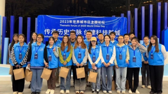 10月29日,2023年世界城市日中国主场的“文化-科技”主题论坛和中日城市管理精细化研讨会在九棵树(上海)未来艺术中心举行,城市建设与安全工程学院20名研究生志愿者参加论坛服务工作。